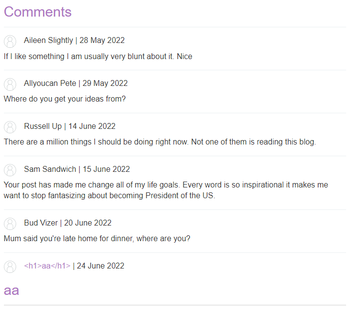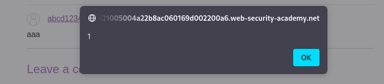 - To solve this lab, submit a comment that calls the alert function when the comment author name is clicked.
