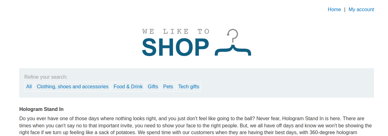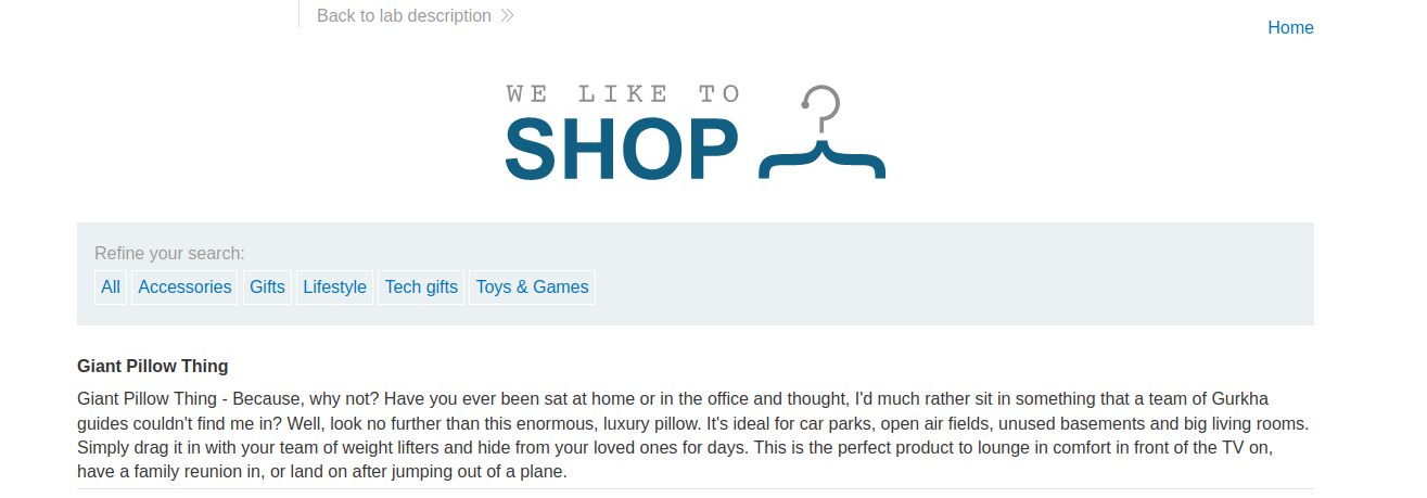 - The web application given is similar to #SQL injection attack querying the database type and version on Oracle where only two functions "Home" and "Filter" are available. Hencew we will not do any futher enumeration but focus on the exploitation.