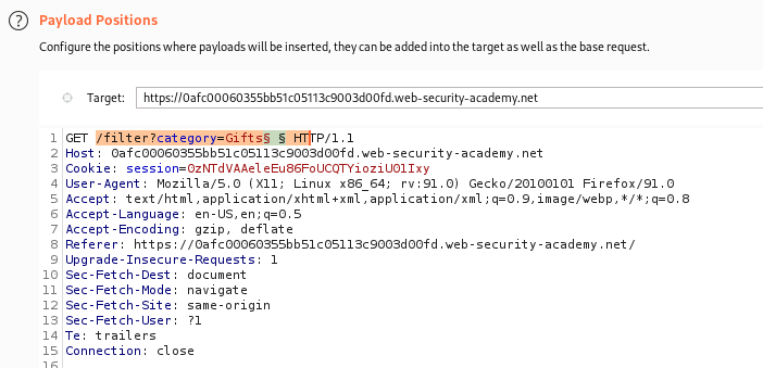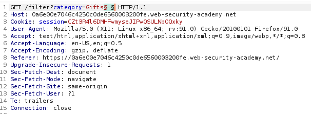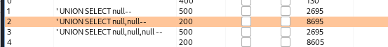 Therefore we will test if the "Filter" function is vulnerable to SQL injection. We will use the payload list used in the previous exercise SQL Injection UNION Attack#SQL injection UNION attack, retrieving multiple values in a single column.