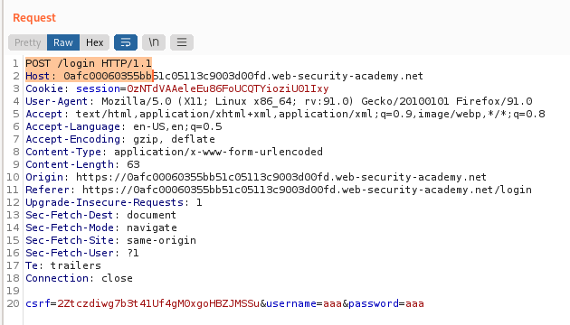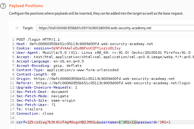 - We will test out the username parameter first then the password parameter with Burp Intruder.