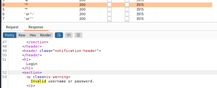 and based on that, after iterating through the entire payload, "username" and "password" parameter does not give us any successful bypass. - Therefore we can conclude that Login function is not vulneable to login bypass SQLi.