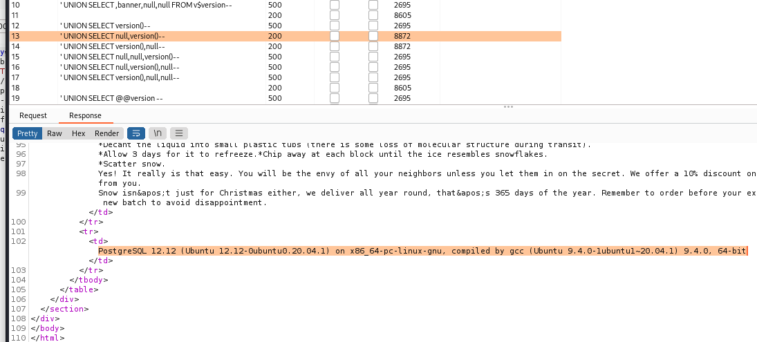 - For this lab reference to this database version cheatsheet would be the most useful. We will craft our payload based on the cheatsheet given.