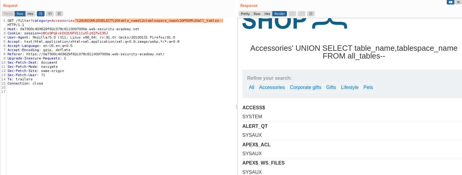 ' UNION SELECT table_name,tablespace_name FROM all_tables--